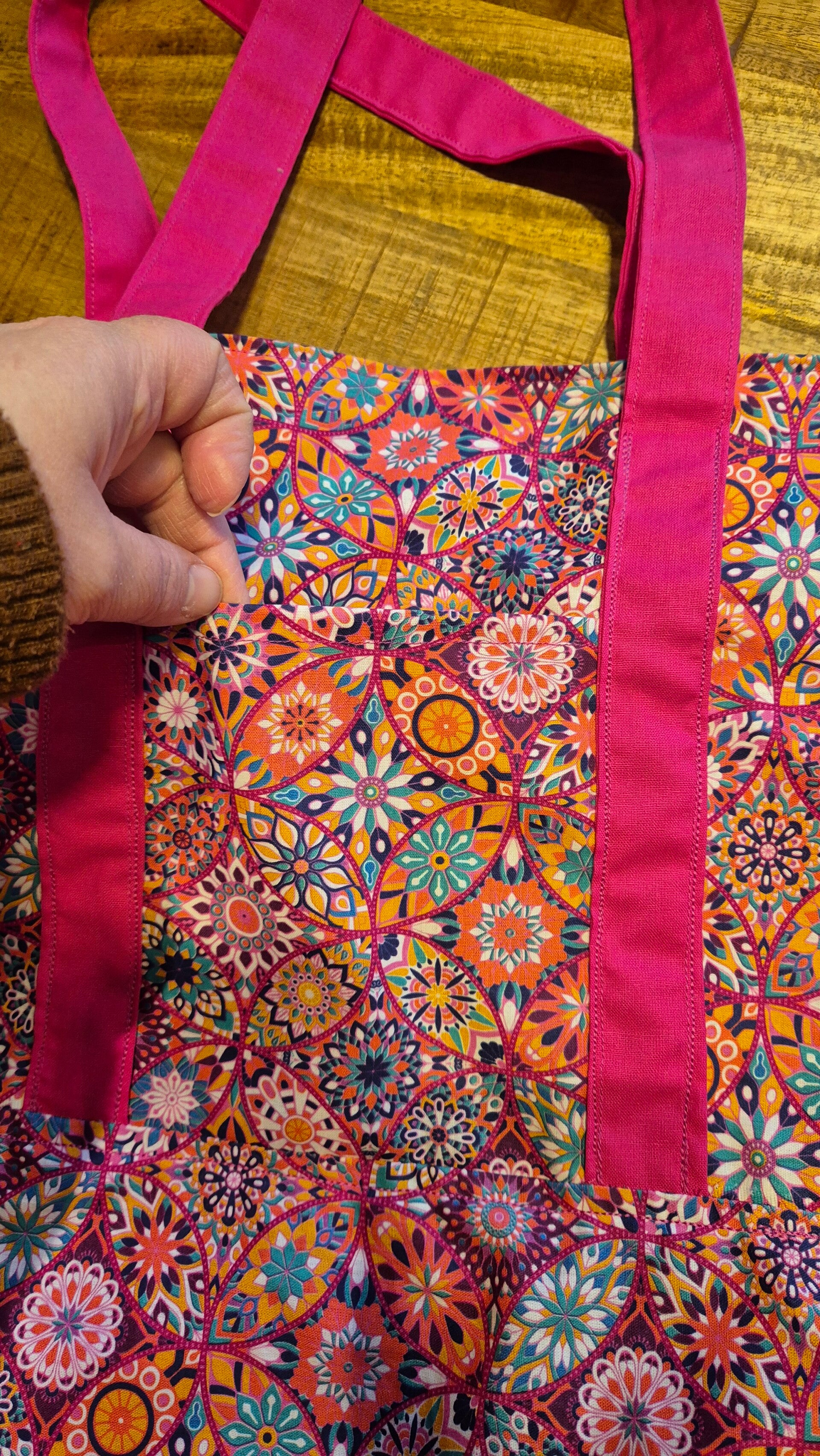 Prachtige Tote bag. Lekker vrolijk en stoer. Met 2 vakken aan de buitenkant van de tas.